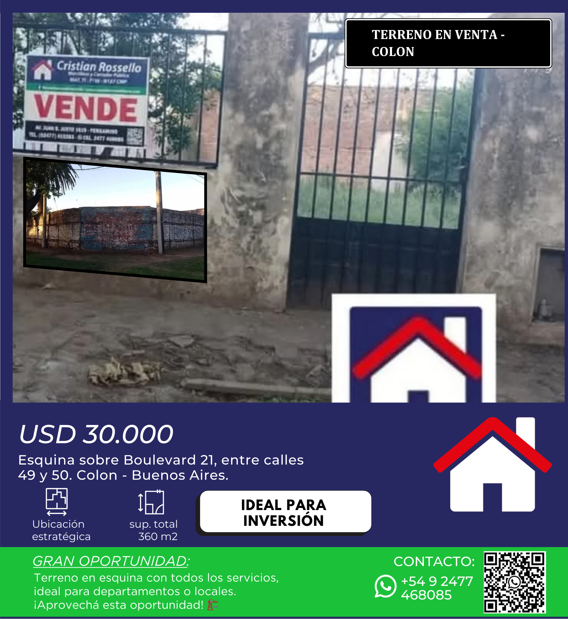 📌 Ubicación privilegiada: Esquina sobre Boulevard 21, entre calles 49 y 50. Zona estratégica con gran potencial de desarrollo.